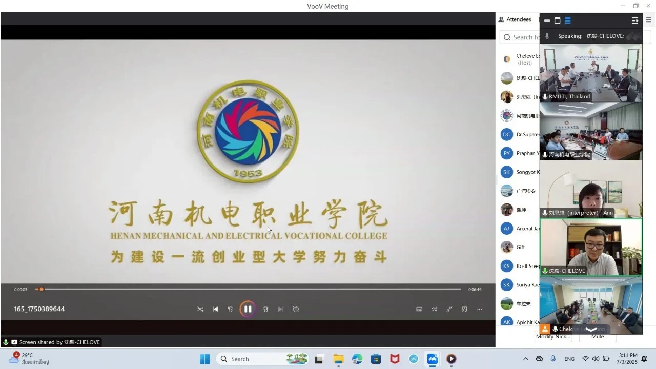 - วิทยาลัยอาชีวศึกษาเครื่องกลและไฟฟ้าเหอหนาน สาธารณรัฐประชาชนจีน (Henan Mechanical & Electrical Vocational College)
