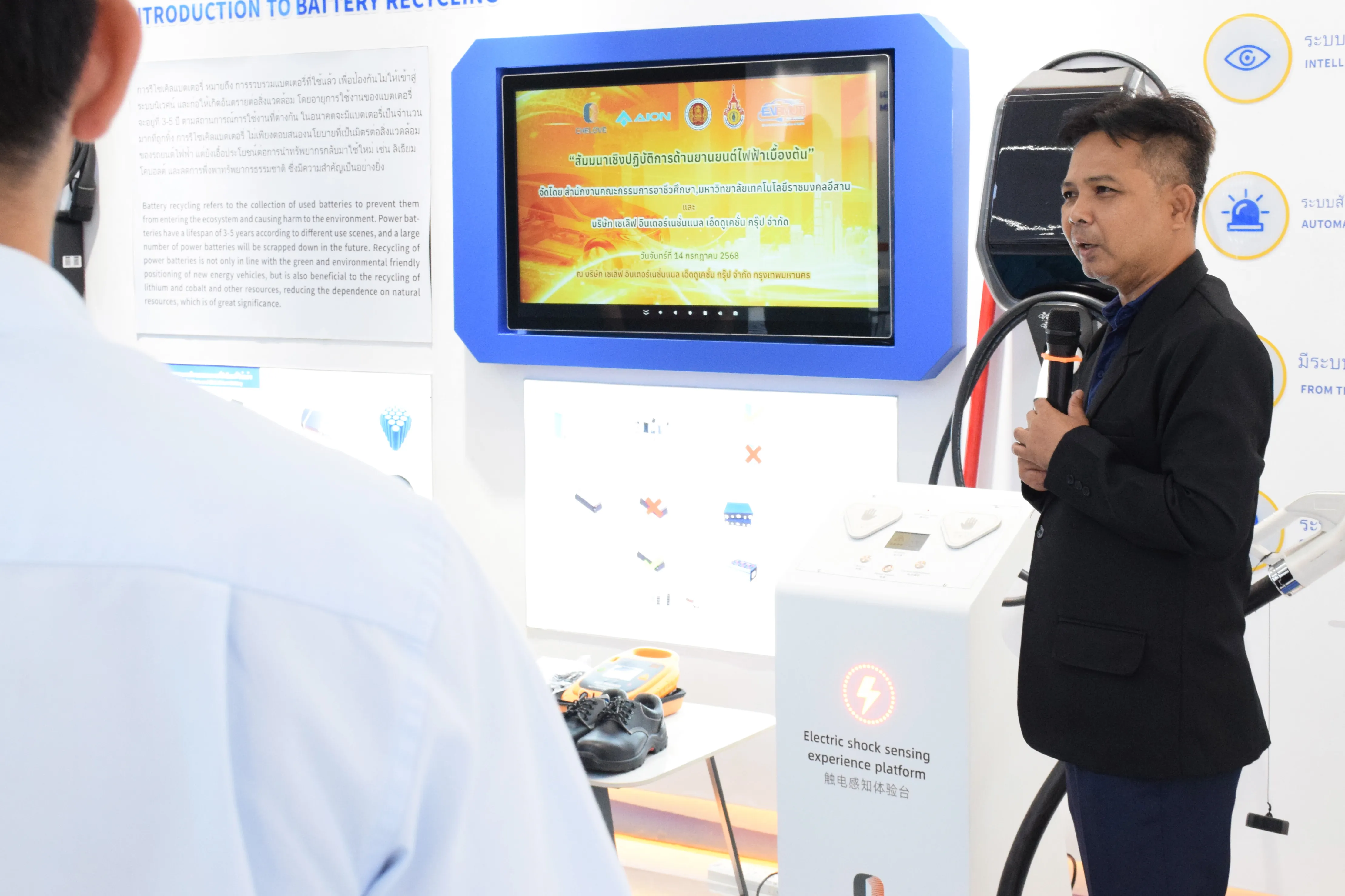 การสัมมนาครั้งนี้ได้รับเกียรติจาก ผู้ช่วยศาสตราจารย์ ดร.เอนก เจริญภักดี รองอธิการบดี มทร.อีสาน เป็นประธานในพิธีเปิด พร้อมด้วย คุณแอนดรูว์ หวัง (Mr. Andrew Wang) ประธานกรรมการบริหาร บริษัท ไอออน ออโตโมบิล เซลส์ (ประเทศไทย) ซึ่งให้เกียรติเยี่ยมชมการอบรมภาคปฏิบัติ โดยมี นายหวัง หย่งเจีย กรรมการบริษัท เชเลิฟฯ ให้การต้อนรับอย่างอบอุ่น
