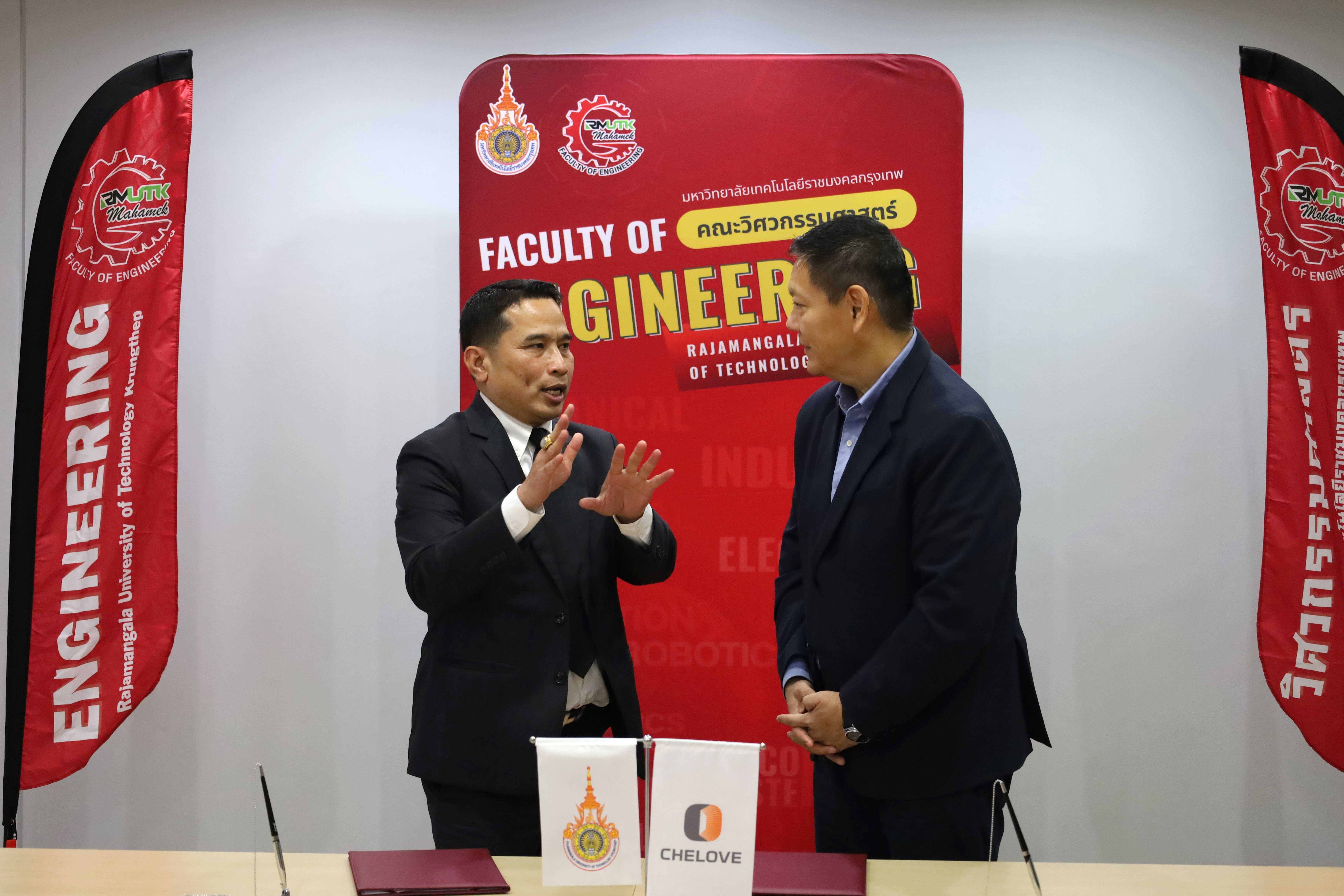 พิธีลงนามในครั้งนี้ได้รับเกียรติจาก รองศาสตราจารย์พิชัย จันทร์มณี อธิการบดีมหาวิทยาลัยเทคโนโลยีราชมงคลกรุงเทพ และ นายหวัง หย่งเจีย ประธานกรรมการ บริษัท เชเลิฟ อินเตอร์เนชั่นแนล เอ็ดดูเคชั่น กรุ๊ป จำกัด ร่วมลงนามในบันทึกความเข้าใจ ซึ่งสะท้อนถึงเจตนารมณ์ร่วมกันในการพัฒนาบุคลากรด้านเทคโนโลยีและนวัตกรรม เพื่อเสริมสร้างขีดความสามารถของประเทศในระยะยาว