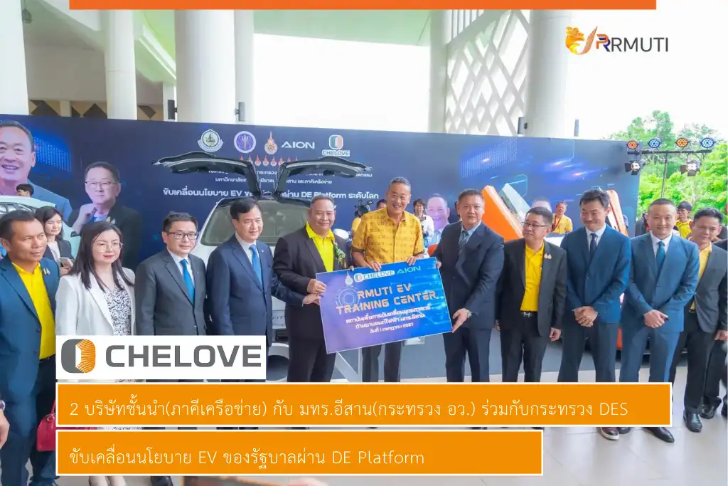 บริษัท เชเลิฟ อินเตอร์เนชั่นแนล เอ็ดดูเคชั่น กรุ๊ป จำกัด ร่วมเป็นสักขีพยาน การลงนามบันทึกข้อตกลงความร่วมมือทางวิชาการ (MOU) ระหว่าง มหาวิทยาลัยเทคโนโลยีราชมงคลอีสาน กับ บริษัท โกลด์ อินทิเกรท จำกัด และ บริษัท อีวีเซเว่น จำกัด เพื่อพัฒนากำลังคนด้านยานยนต์ไ