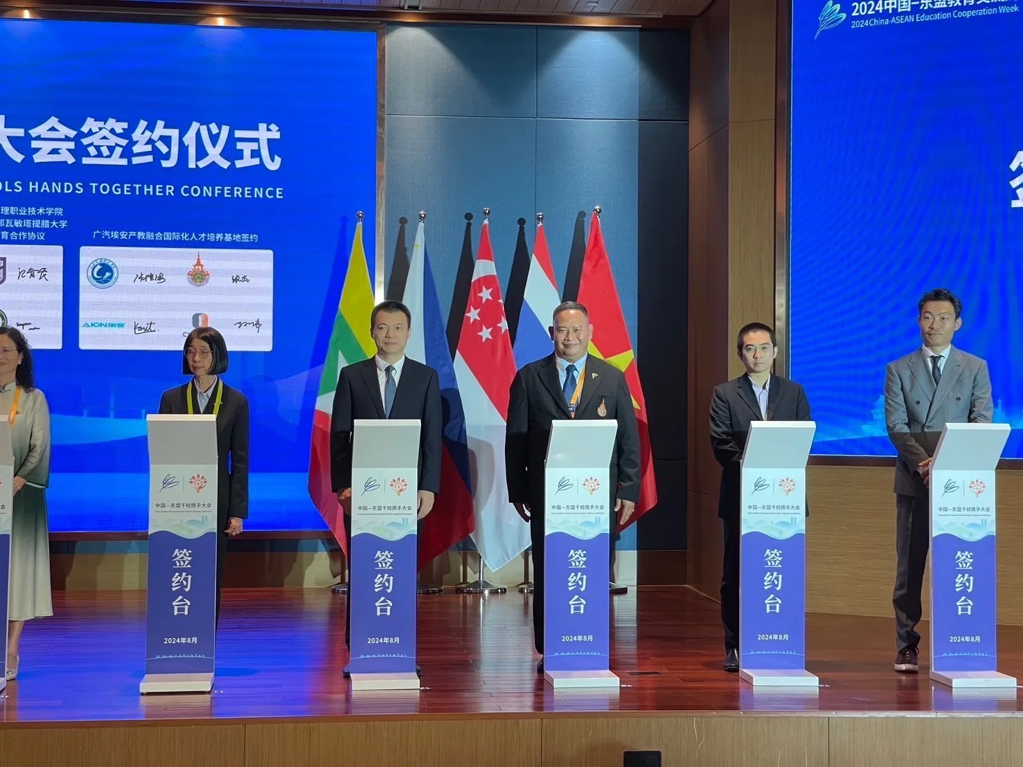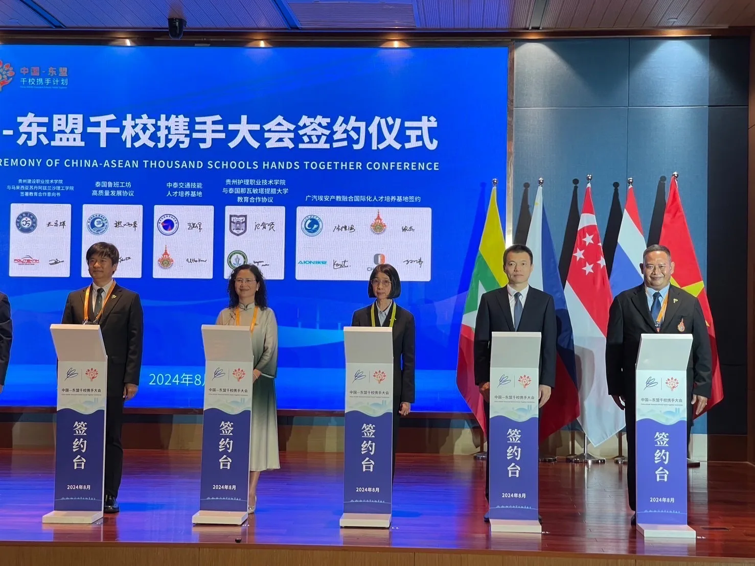 วันที่ 21 สิงหาคม 2567 คณะผู้บริหาร บริษัท เชเลิฟ อินเตอร์เนชั่นแนล เอ็ดดูเคชั่น กรุ๊ป จำกัด และ มหาวิทยาลัยเทคโนโลยีราชมงคลอีสาน โดย รองศาสตราจารย์ ดร.โฆษิต ศรีภูธร อธิการบดี มทร.อีสาน รองศาสตราจารย์ ดร.ณรงค์ศักดิ์ ธรรมโชติ รองอธิการบดีฝ่ายวิชาการและวิเทศสัมพันธ์ และอาจารย์ปริญ นาชัยสิทธิ์ รองอธิการบดีประจำวิทยาเขตขอนแก่น เข้าร่วม “สัปดาห์แลกเปลี่ยนการศึกษาจีน – อาเซียน 2024” เพื่อสนับสนุนและส่งเสริมความร่วมมือด้านการศึกษาพัฒนาบุคลากรและแลกเปลี่ยนวัฒนธรรม ภายใต้นโยบาย One Belt One Road เพื่อพัฒนาหลักสูตรการเรียนการสอน จัดโครงการแลกเปลี่ยนครูผู้เชี่ยวชาญ นักเรียนและนักศึกษาระหว่างประเทศจีนและกลุ่มประเทศอาเซียน ระหว่างวันที่ 21-25 สิงหาคม 2567 ณ เมืองกุ้ยหยาง มณฑลกุ้ยโจว สาธารณรัฐประชาชนจีน โดยมทร.อีสาน ได้เข้าร่วมลงนามบันทึกความเข้าใจในด้านการร่วมจัดตั้งศูนย์ GAC Industry – Education Integration International Talent Training Center ระหว่าง บริษัท GAC Aion New Energy Automobile Company Limited วิทยาลัยอาชีวะจีนชานตง (Shandong Polytechnic College) บริษัท Chelove International Education Group Limited และมหาวิทยาลัยเทคโนโลยีราชมงคลอีสาน เพื่อรองรับการฝึกอบรมการซ่อมบำรุงยานยนต์ไฟฟ้าอย่างมีประสิทธิภาพสูงสุด ไม่ว่าจะเป็นการอบรมหลักสูตรระยะสั้น ระยะยาว เพื่อการพัฒนา และเรียนรู้ของนวัตกรรมยานยนต์ไฟฟ้าแห่งอนาคต