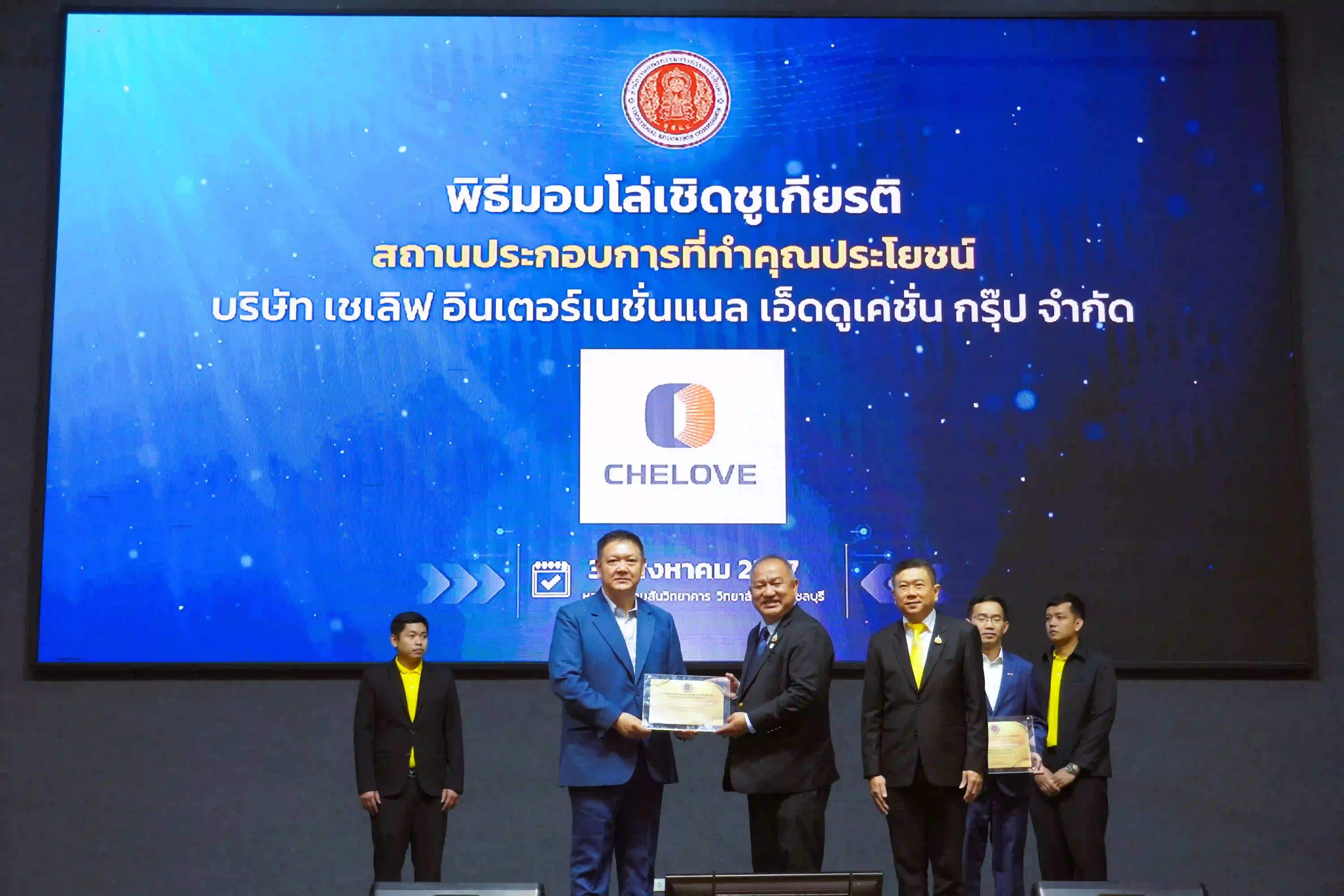 นายหวัง หย่ง เจีย ประธานกรรมการบริหาร (Chairman) และ นายซุน เว่ย (Co-chairman) ประธานกรรมการบริหารร่วมบริษัท Chelove ได้รับเกียรติจากวิทยาลัยเทคนิคชลบุรีให้เข้าร่วมพิธีลงนามความร่วมมือ ยกระดับและขยายเครือข่ายความร่วมมือการผลิตและพัฒนากำลังคนอาชีวศึกษาสมรรถนะสูง รองรับความต้องการในเขตพัฒนาพิเศษภาคตะวันออก ตอบสนองนโยบาย 'เรียนดี มีความสุข' ณ หอประชุมคมสันวิทยาคาร วิทยาลัยเทคนิคชลบุรี จังหวัดชลบุรี เมื่อวันที่ 30 สิงหาคม 2567 ภายในงาน มีการส่งมอบรถไฟฟ้า AION Y Plus เพื่อเป็นครุภัณฑ์ทางการศึกษาเพื่อใช้ในการเรียนการสอนช่วยส่งเสริมและพัฒนากำลังคนอาชีวศึกษาสมรรถนะสูงจาก บริษัท GAC AION ร่วมกับบริษัท Chelove นอกจากนี้ยังได้มีพิธีลงนามความร่วมมือ ยกระดับและขยายเครือข่ายความร่วมมือการผลิตและพัฒนากำลังคนอาชีวศึกษาสมรรถนะสูง รองรับความต้องการในเขตพัฒนาพิเศษภาคตะวันออก ระหว่างบริษัท Chelove กับ สำนักงานคณะกรรมการการอาชีวศึกษา เพื่อรองรับอุตสาหกรรมด้านยานยนต์ไฟฟ้า ภายใต้ การขับเคลื่อนคณะอนุกรรมการร่วมภาครัฐและเอกชนเพื่อผลิตและพัฒนากำลังคนอาชีวศึกษา (อ.กรอ.อศ.) กลุ่มอาชีพ ยานยนต์ไฟฟ้า